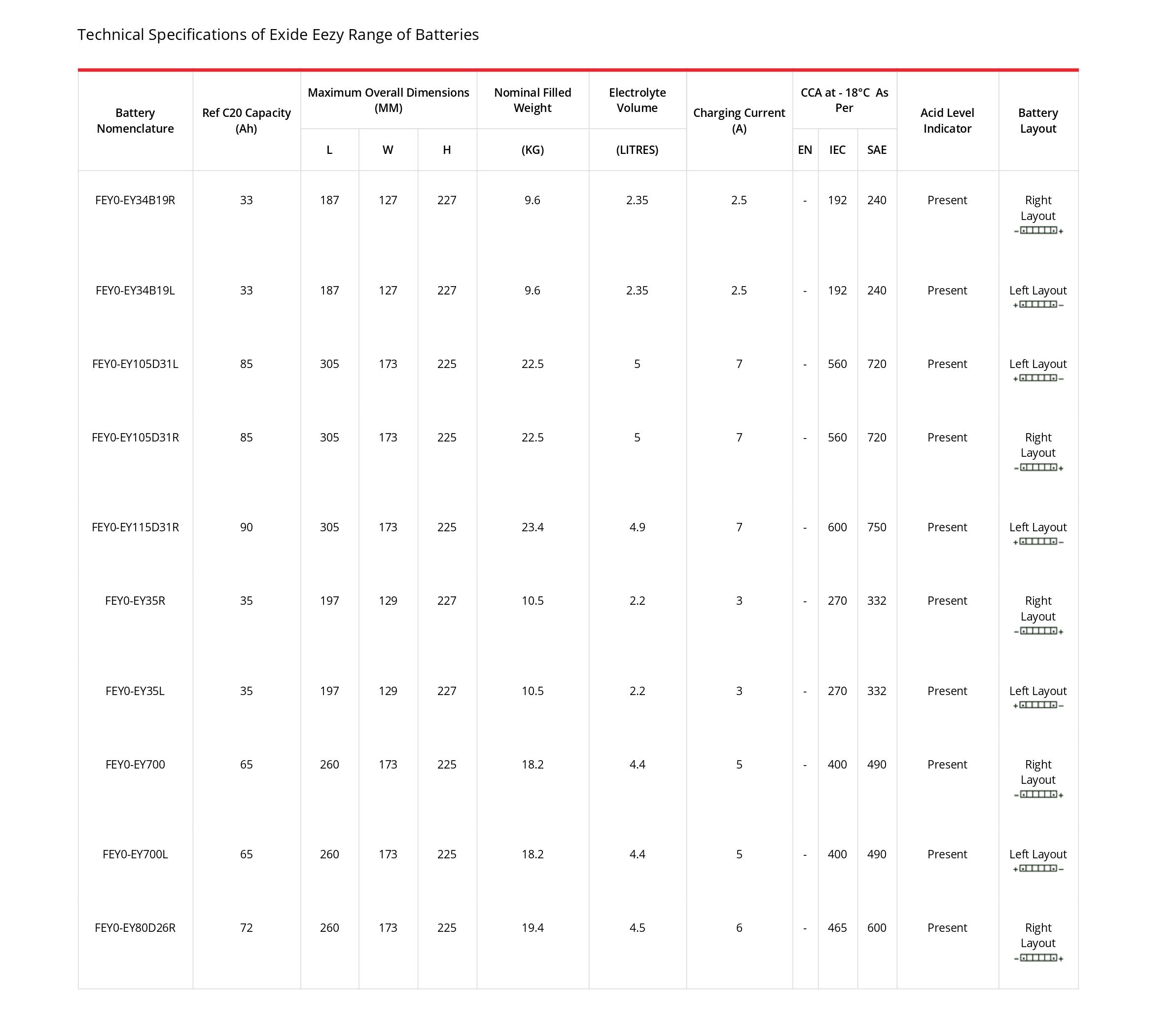 - Special paste formulation for positive and negative plates - higher life expectancy with